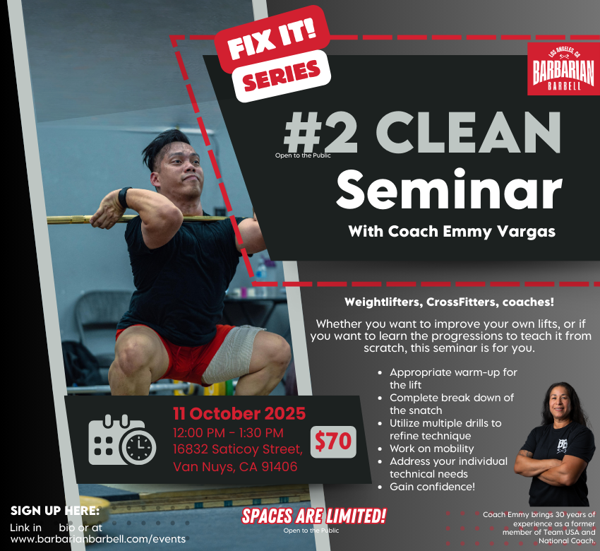 For athletes with weightlifting experience that are looking to refine their technique on the SNATCH, CLEAN and/or JERK be sure to check out our FIX IT! Series.